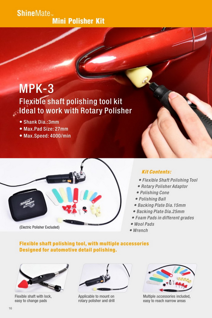 ขายดีอันดับ 1 !! ชุดหัวขัดสีรถ 22 ชิ้นจาก SHINE MATE พร้อมท่อต่อสแตนเลสแท้ยาว 4 นิ้วขัดเข้าได้ทุกซอกมุม พร้อมหัวฟองน้ำขัดสีรถ ขนาด 3" 2" 1.2"