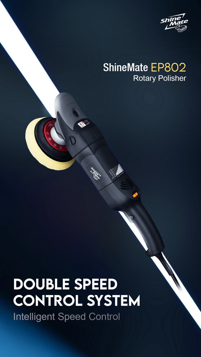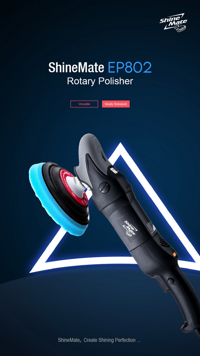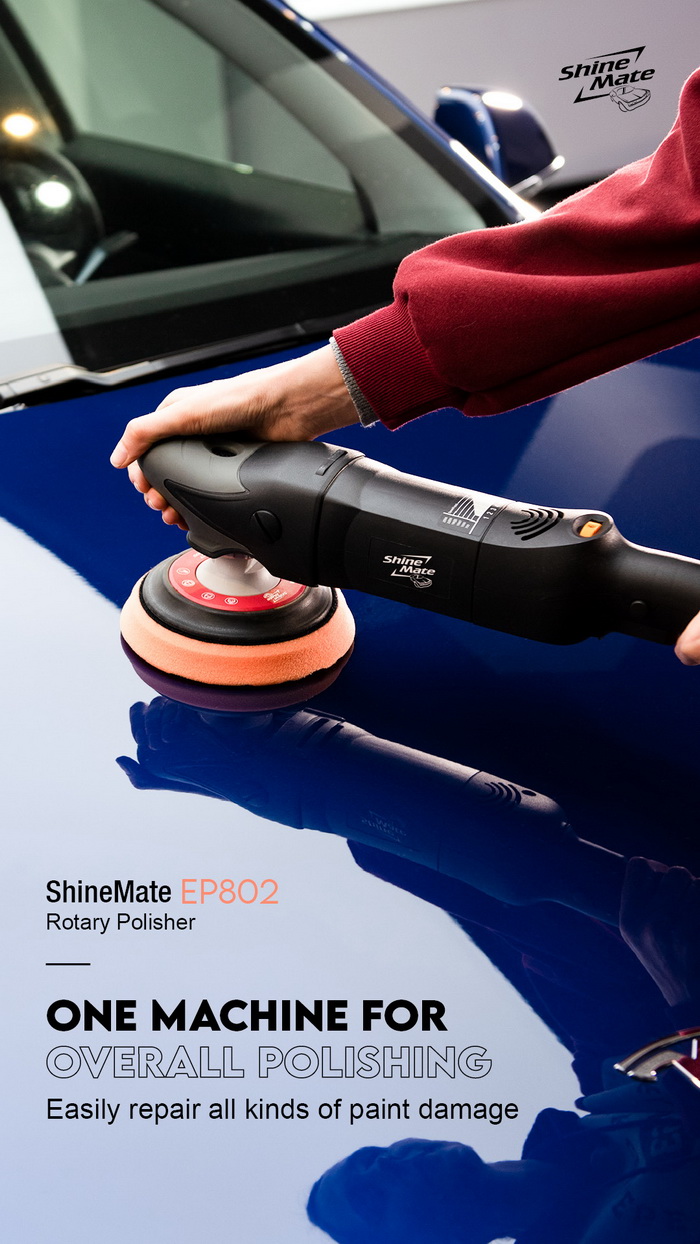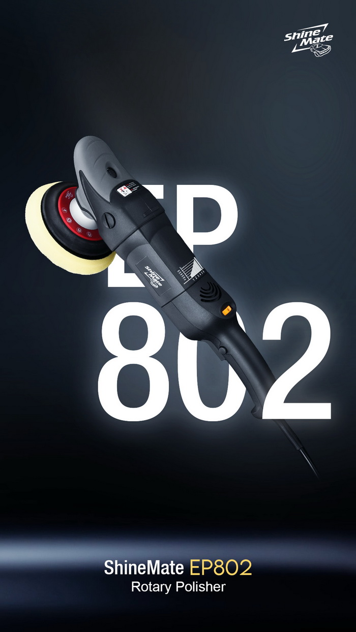 เครื่องขัดระบบโรตารี Shine Mate รุ่น EP802 คราบคลุมงานทุกประเภททั้งงานคาร์แคร์ และงานอู่สรถ ตั้งแต่เคลือบสีรถ ลบรอยขนแมว ไปจนถึงงานขัดลบรอยกระดาษทราย