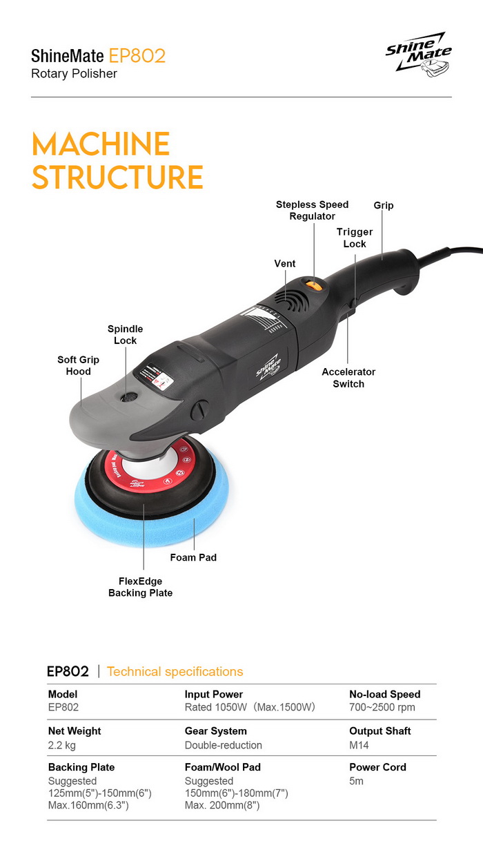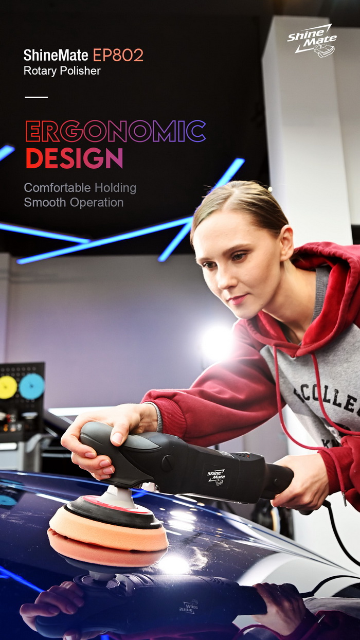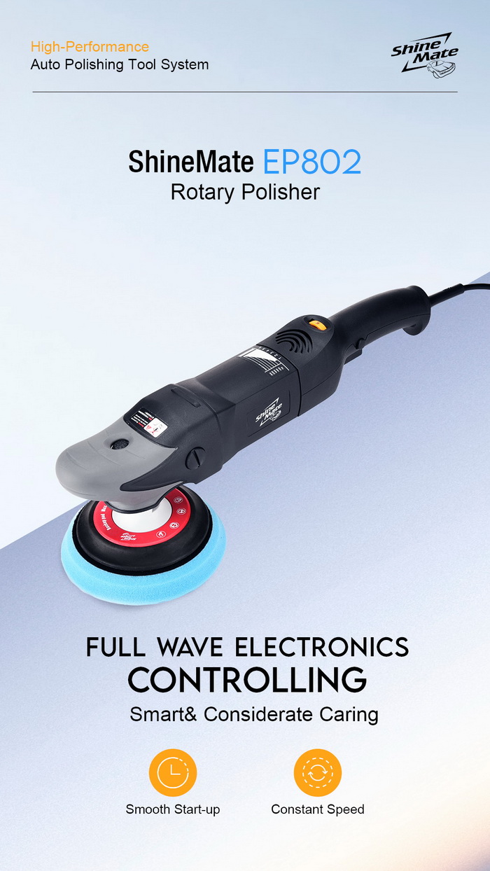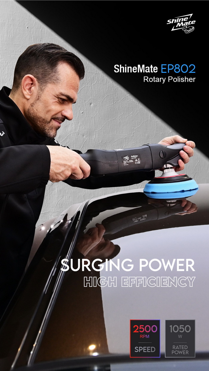 เครื่องขัดระบบโรตารี Shine Mate รุ่น EP802 คราบคลุมงานทุกประเภททั้งงานคาร์แคร์ และงานอู่สรถ ตั้งแต่เคลือบสีรถ ลบรอยขนแมว ไปจนถึงงานขัดลบรอยกระดาษทราย