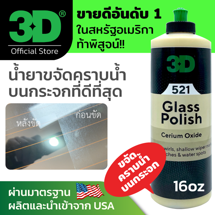 3D Glass Polish [Cerium Oxide] ใหม่!! น้ำยาขัดคราบน้ำฝังแน่น และรอยขัดข่วนบนกระจกรถ ใช้ง่าย ปลอดภัย นำเข้าจาก USA