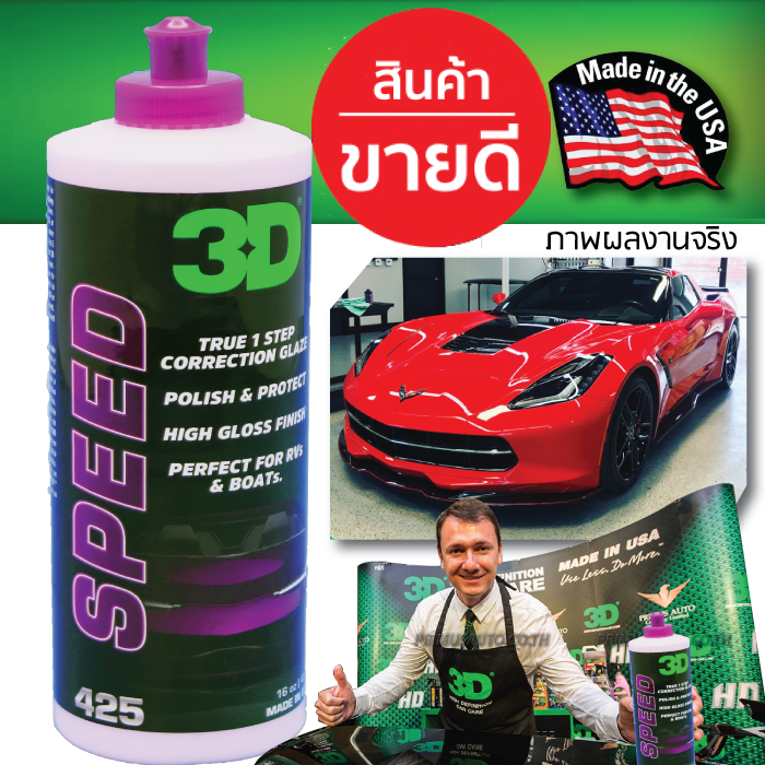 3D SPEED น้ำยาขัดพร้อมเคลือบสีรถ ใช้งานง่าย ปลอดภัย ลบรอยได้ไว ให้ผลงานออกมาสวยระดับ World Class