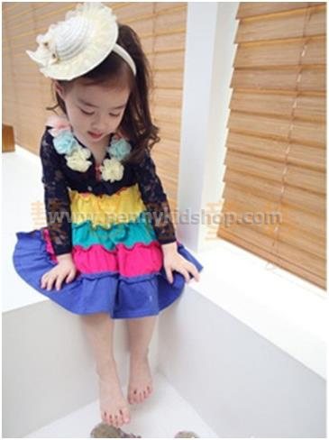 เดรสสาวน้อยแขนกุดแต่งดอกไม้ที่หน้าอก *สีเขียว* งาน B2W2