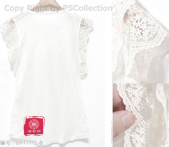 เสื้อผ้าฝ้าย แขนกุด แต่งระบายลูกไม้