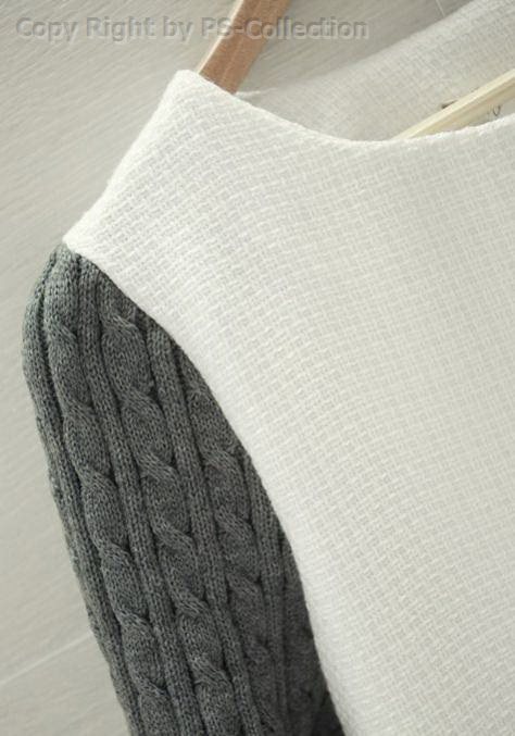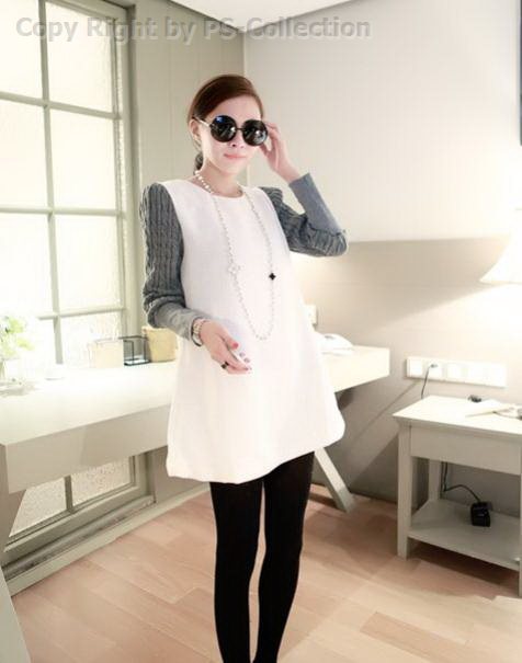 เดรสหรือเสื้อตัวยาวแบบเกาหลี แขนตัดต่อผ้ายืด เหมือนใส่ 2 ชิ้นค่ะ