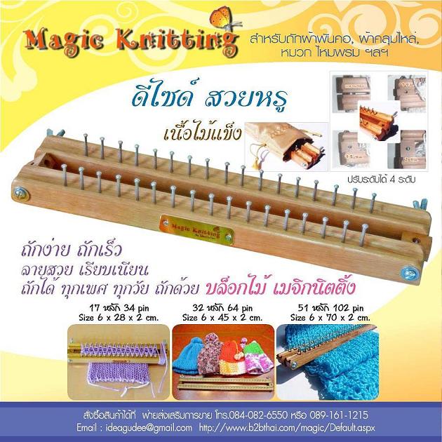 มาแล้วตามคำเรียกร้อง!!! " หนังสือลายถักผ้าพันคอจากบล็อกไม้ " พิมพ์ 4 สี กระดาษมันเงาทุกหน้าทุกลาย รวมลายมากมาย พร้อมรายละเอียดการถัก มีรูปประกอบการอธิบาย เข้าใจง่าย มีวิธีการเก็บริม/การจบงาน การทำชายล่าง การทำชายบน แลอื่นๆ อีกมากมาย เหมาะสำหรับ ผู้ที่ไม่มีพื้นฐานการถักผ้าพันคอจากบล็อกไม้เลย และท่านก็สามารถทำได้ สำหรับผู้ที่เคยถักหรือมีพื้นฐานแล้ว เราก็มีลายใหม่ๆ ลายยากๆ ให้ลองถัก ลองประลองความสามารถในการถักดูค่ะ ติดต่อ คุณหญิง โทร.084-082-6550 คุณศุลีพร(นก) โทร.089-161-1215 อีเมล์ : ideagudee@gmail.com ดูรายละเอียดเพิ่มเติม คลิ๊ก http://www.b2bthai.com/magic/Default.aspx