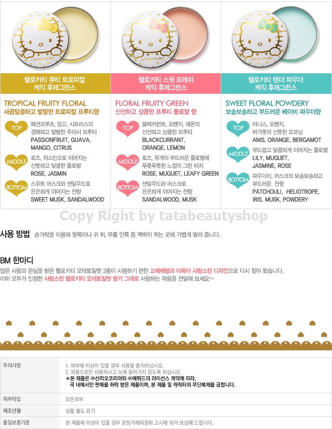 ชื่อสินค้า / บริการ : Etude Hello Kitty Sweet Fresh Cake Fragrance #Cutie Tropical