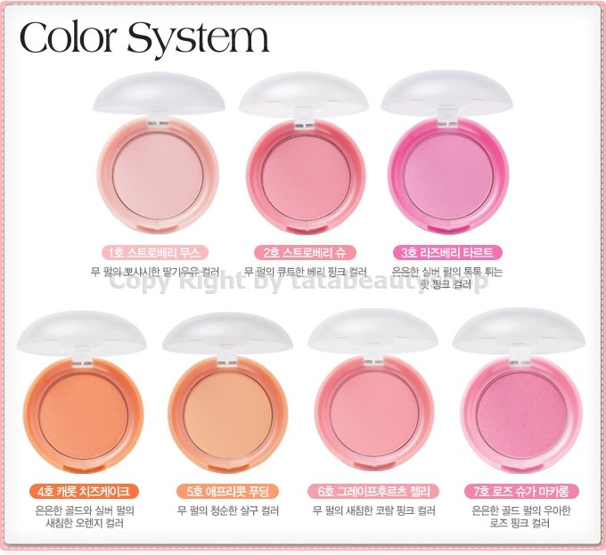 No.5 Apricot Puddingบลัชออนสีสวยหวานน่ารัก ใหม่จาก ETUDE แต่งแต้มพวงแก้มคุณสาวๆ ให้ดูสดใสเป็นธรรมชาติ มาพร้อมพัฟขนนุ่มในตลับ มีให้เลือกหลากหลายสีมากขึ้นถึง 7 โทนสี