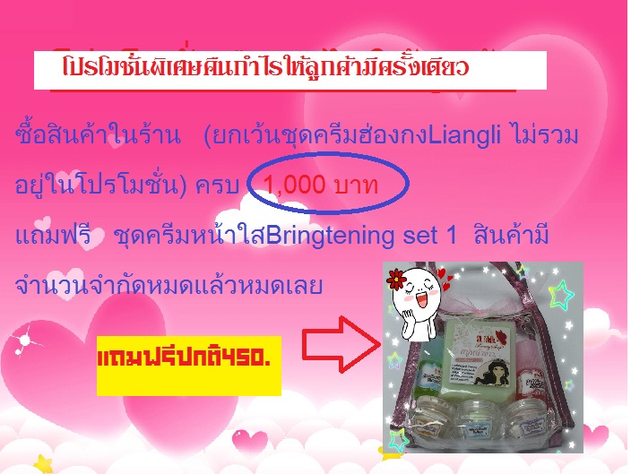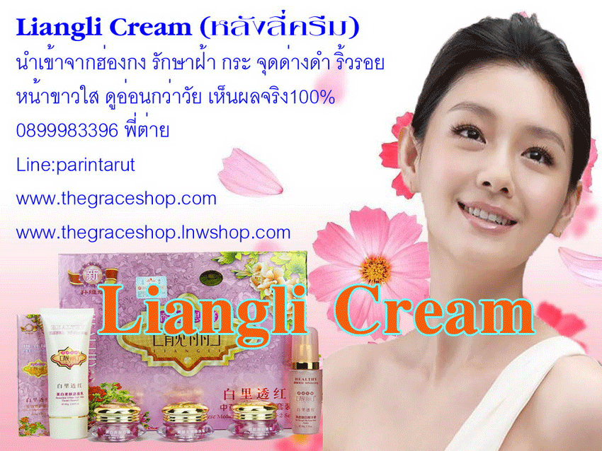 ยินดีต้อนรับทุกท่านเข้าสู่ร้าน Grace Beautyshop จำหน่ายครีมมหัศจรรย์นำเข้าจากฮ่องกง Liangli Cream ใช้แล้วหน้าขาวกระจ่างใสเห็นผลจริง100% ปลอดภัยปราศจากสารอันตราย เลิกใช้หน้าไม่ดำ ไม่หมอง ไม่เกิดสิว แม่ค้าใช้มานานกว่า4ปีแล้วค่ะ จึงนำมาจำหน่ายตอนนี้ชุดครีมมี2แพคเกจ แพคเกจใหม่ชุดละ1,700บาท และแพคเกจเดิมชุดละ1,500บาท ส่งฟรีแบบEMSค่ะ สนใจสินค้าสั่งซื้อได้กดสินค้าลงตระกร้าได้เลยค่ะ เปลี่ยนคุณเป็นคนใหม่สวยขึ้น เด็กขึ้นแน่นอน