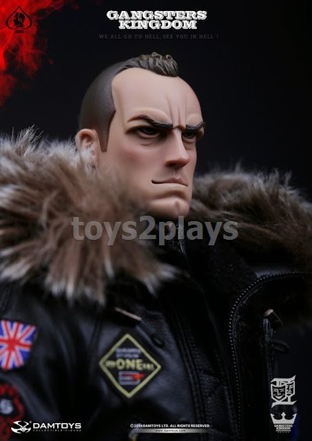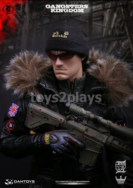 DAM TOYS 1/6th scale Gangsters Kingdom (GK#007) Spade 5 "Baron" 12-inch figure will come with 1/6 scale Head sculpt, 12-inch Action figure body, Black fur coat, Long sleeve t-shirt, Camouflage trousers, Black long bag, Camouflage raincoat, Black beanie, black belt, SR-25 sniper rifle, G17 pistol, Bluetooth headset, Mobile phone, sunglasses, gloved hands / Palms x 3, Palms x 2 Leather shoes, necklace.