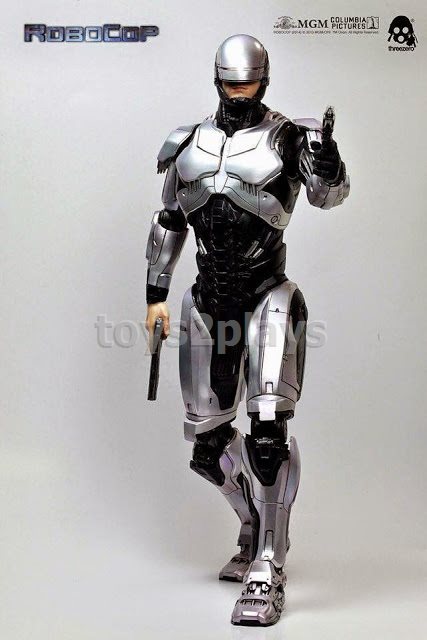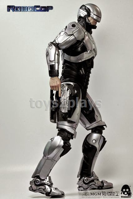 RoboCop 1.0 details: fully articulated figure; figure stands ~12.5" (around 32cm) tall; highly detailed mechanical design; helmet features LED light-up visor; realistic paint application highlighting the details; both Stun gun & Machine gun can pop out from left and right built-in holsters; both guns can be manually extended; 3 kinds of interchangeable hands - relaxed hands, fists & gun holding hands; AG1 X 3 button cell batteries are required (batteries not included).