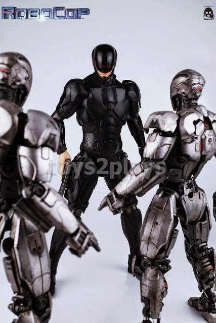 ThreeZero RoboCop 3.0 collectible details: fully articulated figure stands ~12.5 inches tall with highly detailed mechanical design based on the official movie. Helmet features LED light-up visor, realistic paint application highlighting details. Both Stun gun & Machine gun can pop out from his left & right built-in holsters. Comes with stun gun & machine gun (can be extended manually) for inserting into the built-in holsters, and also comes with stun gun & machine gun for holding in hands. 3 kinds of interchangeable hands - relaxed hands, fists & gun holding hands. Requires AG1 X 3 button cell batteries (batteries not included).