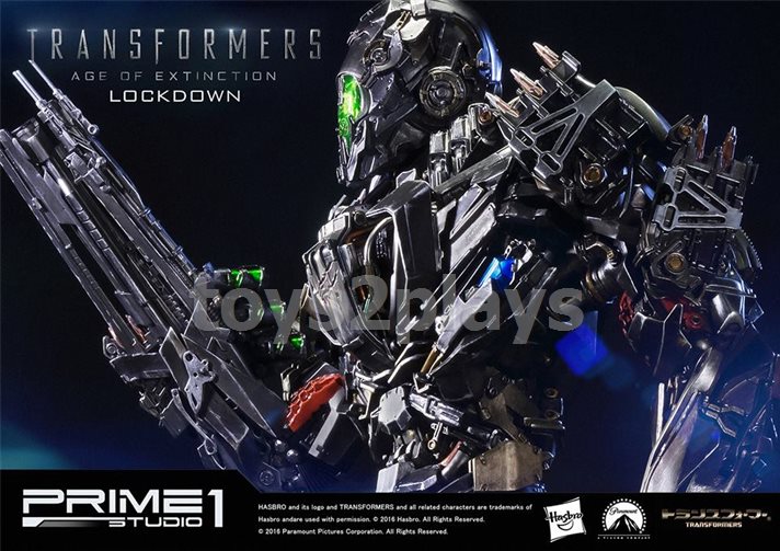 Prime 1 Studio is proud to present MMTFM-10 LOCKDOWN is the secondary antagonist of Transformers: Age of Extinction. Answering only to his enigmatic "Creators", Lockdown holds himself above the Autobot/Decepticon war and sees both sides as squabbling children that he has to rein in personally. He doesn't think much of other civilized species across the galaxy (particularly humans), though he isn't above working with them if it suits him.