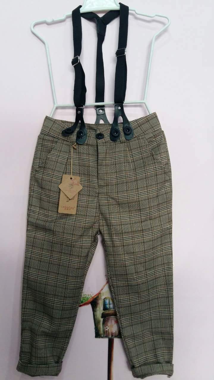 กางเกงเด็กแนวๆ สไตล์เกาหลี สก๊อตน้ำตาล สายเอี้ยม 3-8ขวบ(พร้อมส่ง)