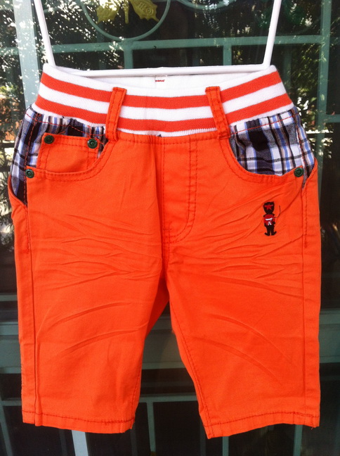 กางเกง4-5ส่วนสีส้มฟริงเกิลผ้าผสมยีนส์ยืด ป้ายเกาหลี 2-9ขวบ(พ...