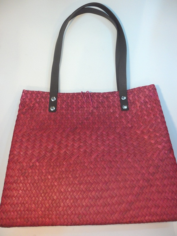 กระเป๋าสาน ทำจากกระจูด ทรงแอร์เมส มีหูหิ้ว หนังสีดำ