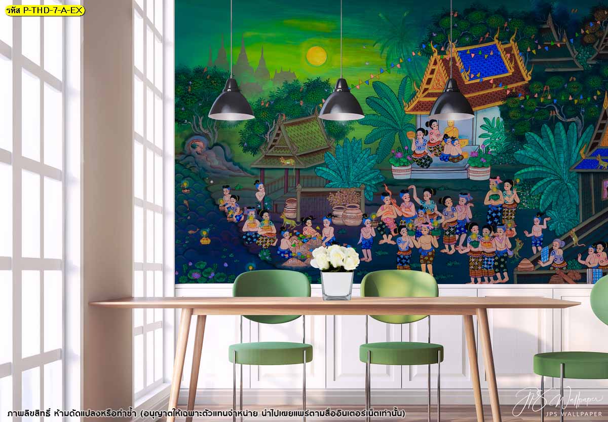 ชื่อสินค้า :วอลเปเปอร์สั่งพิมพ์ลายไทยลิขสิทธิ์ ประเพณีไทย