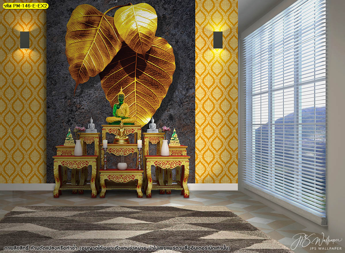 ชื่อสินค้า :วอลเปเปอร์สั่งพิมพ์ลายไทย ใบโพธิ์ทอง