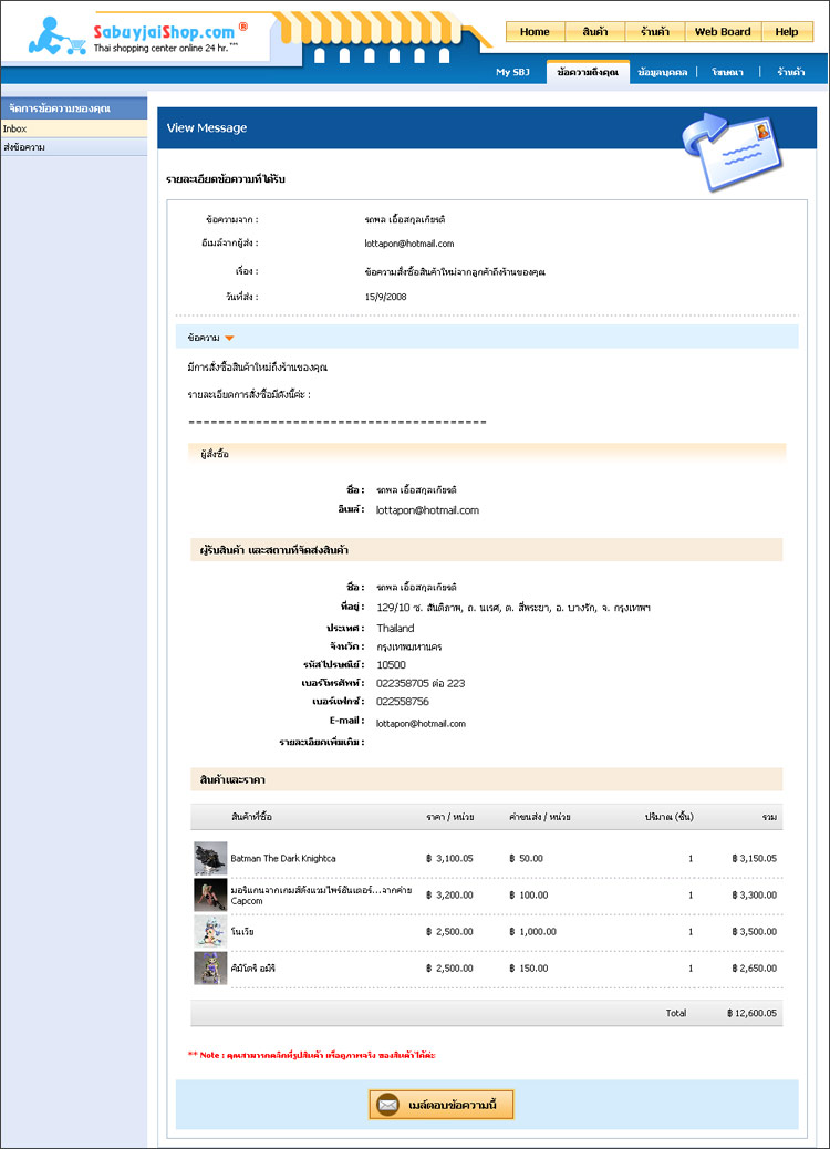 เข้าระบบข้อความ (inbox) ของคุณ ทำให้คุณสามารถตรวจสอบรายละเอียดการโอนเงินจากลูกค้าก่อนจัดส่งสินค้าให้กับลูกค้า